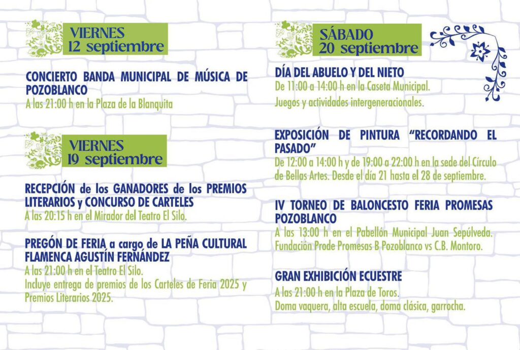 Feria de Pozoblanco 2025: Del 23 al 28 de Septiembre.
