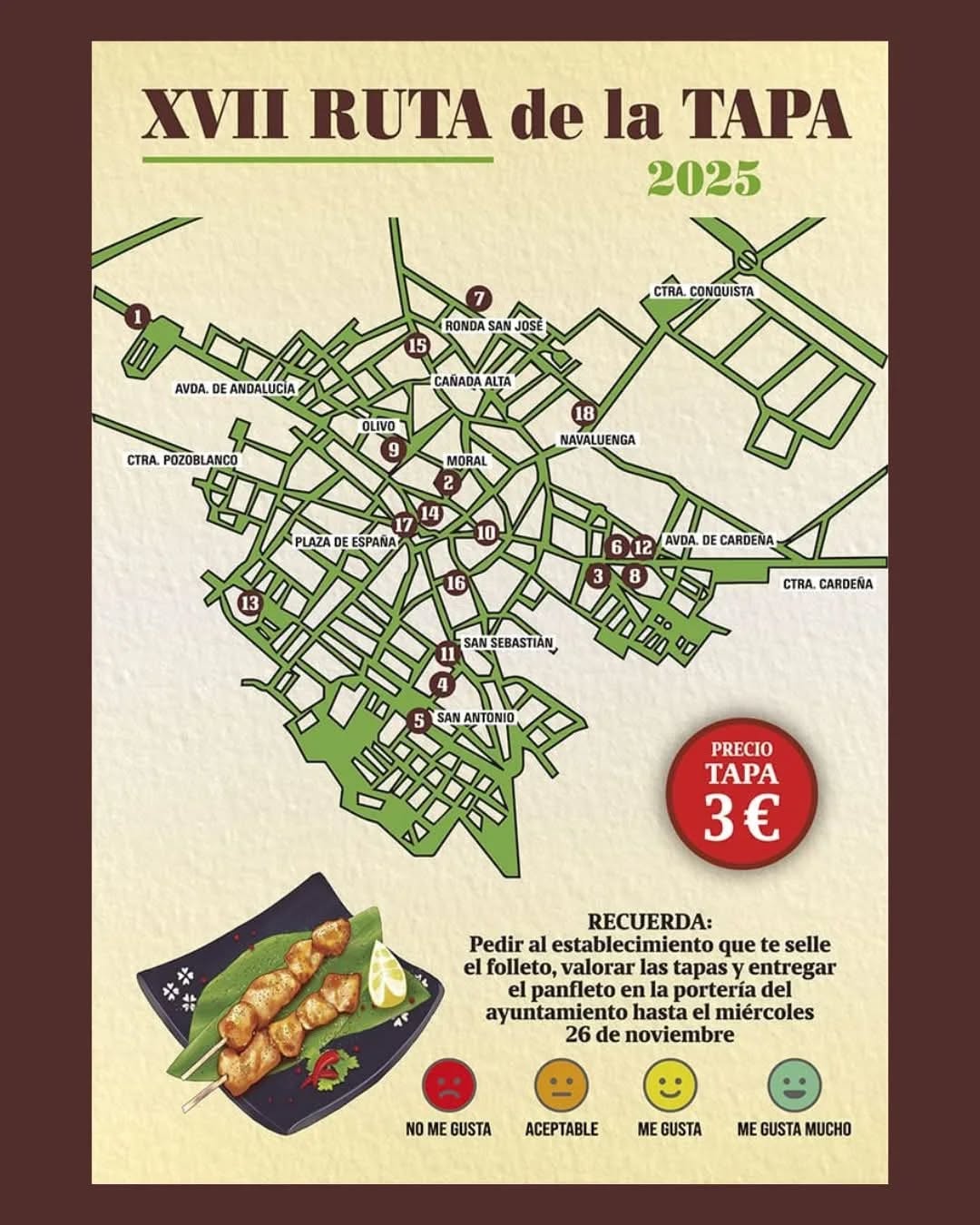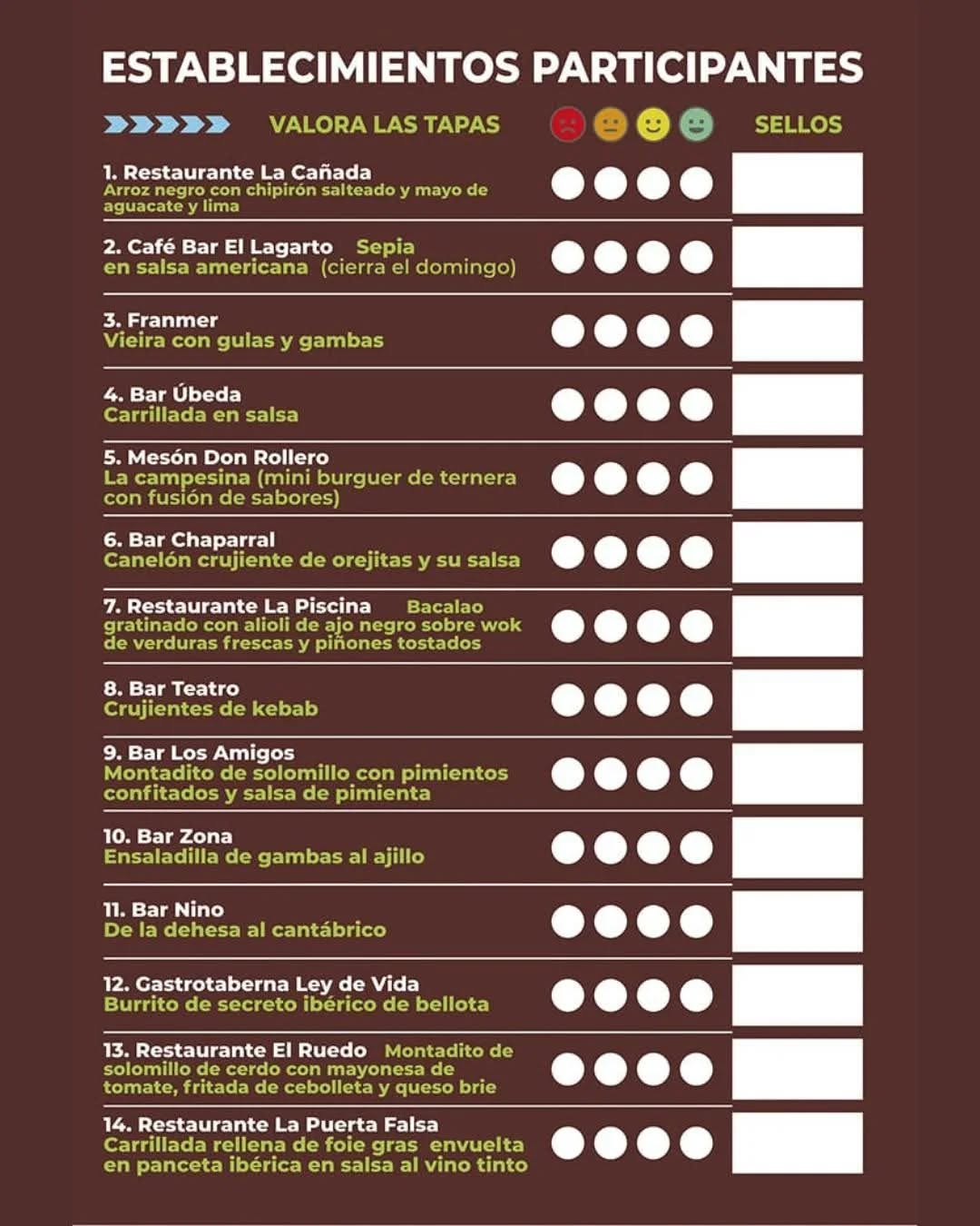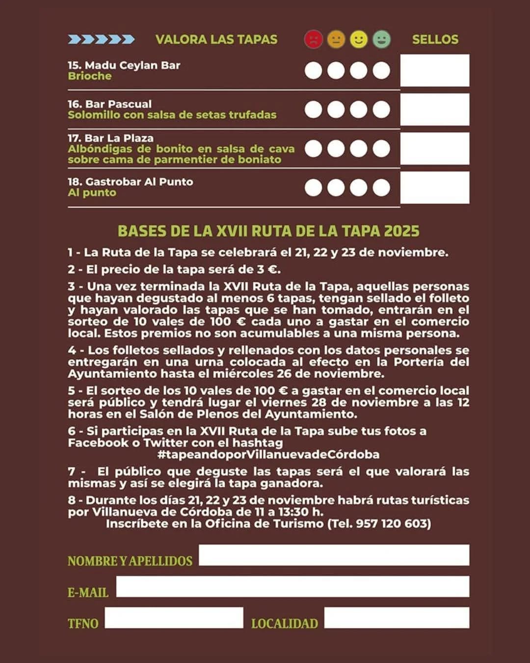 Recuerda: Pedir al establecimiento que te selle el folleto, valorar las tapas y entregar el panfleto en la portería del ayuntamiento hasta el miércoles 26 noviembre